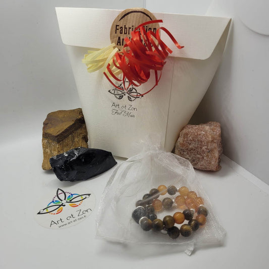 Box Ma Force Intérieure - Œil De Tigre, Pierre De Soleil, Obsidienne, Cornaline, Pierre De Lave