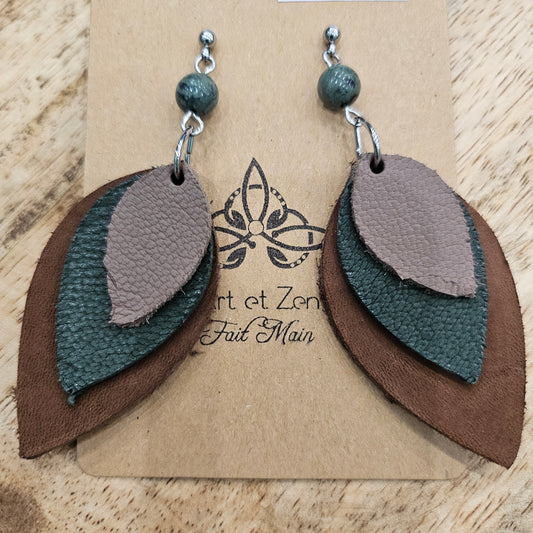 Boucles d'oreilles Cuir Aigue Marine / Cornaline / Quartz Rose / Émeraude