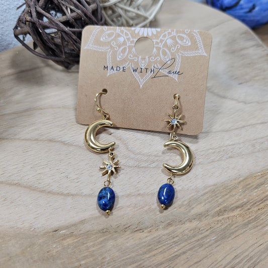 Boucles d'oreilles Lune & Etoile Améthyste/ Quartz Rose / Lapis-lazuli/ Rubis Zoisite/ Aventurine