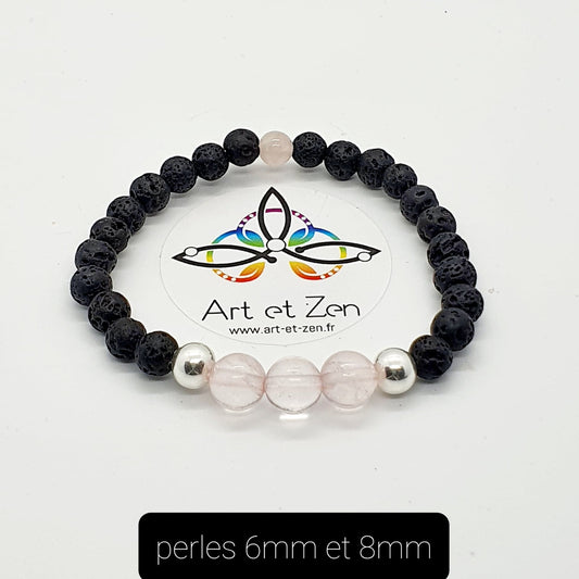 Bracelet Love Coloris Noir Quartz Rose / Pierre de Lave