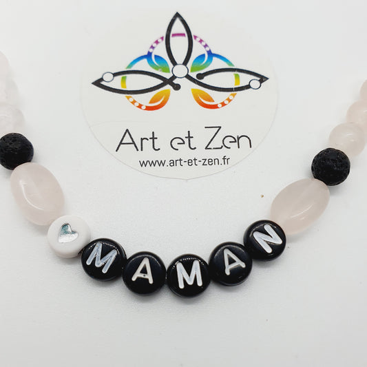 Bracelet Love MAMAN Quartz Rose / Pierre de Lave